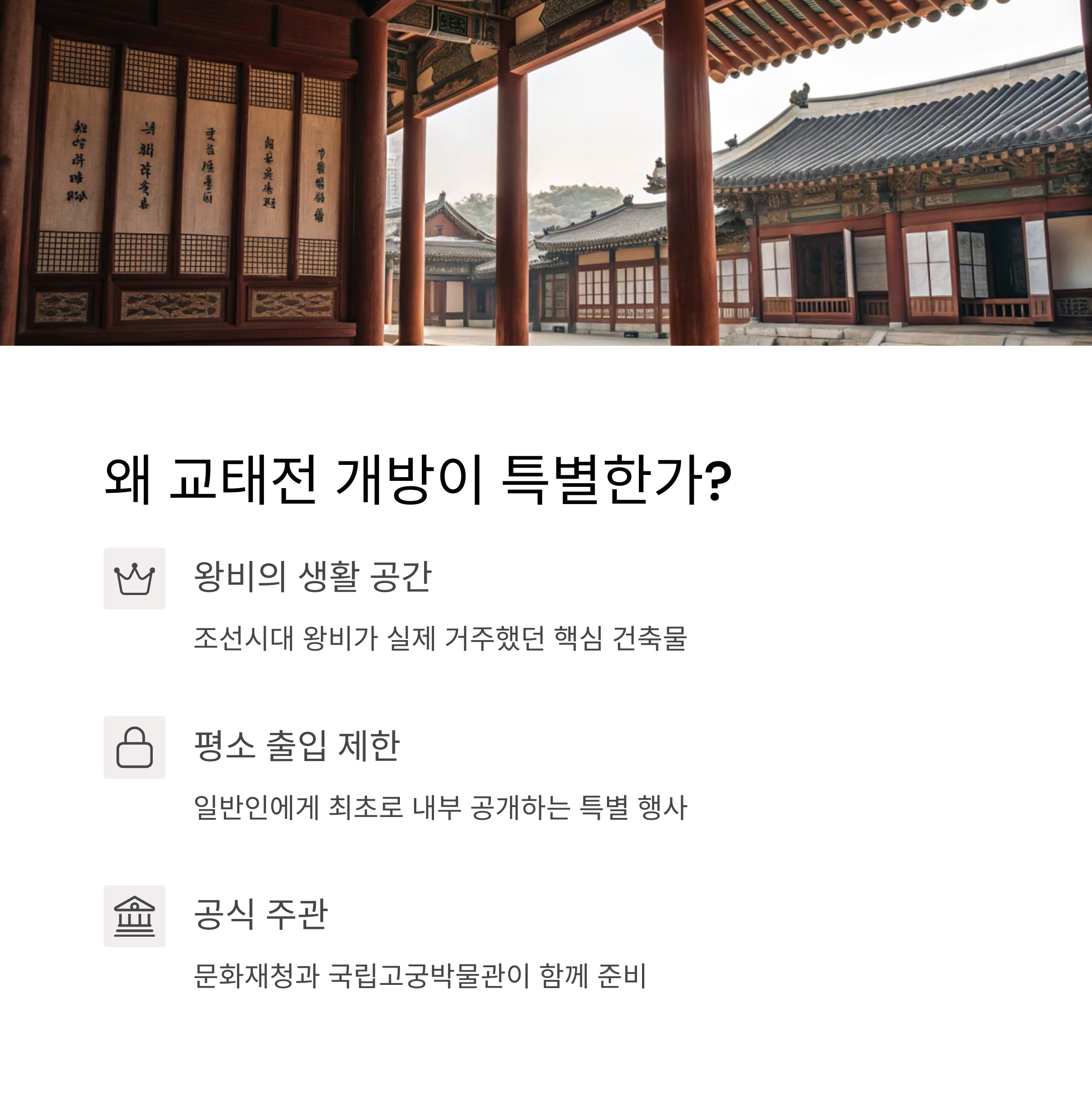 이번 교태전 개방은 단순한 관람이 아닙니다.