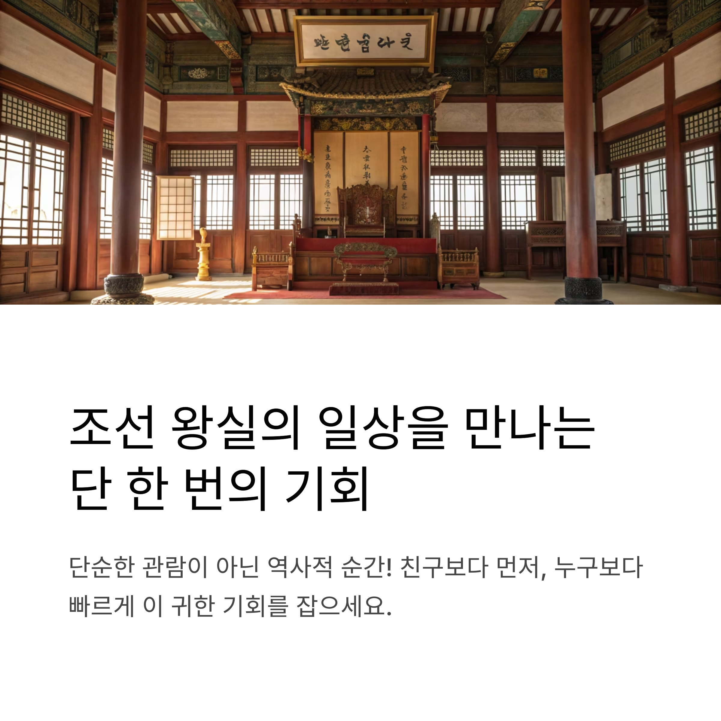 조선 왕실의 일상을 눈으로 확인할 수 있는 단 하나의 기회입니다.