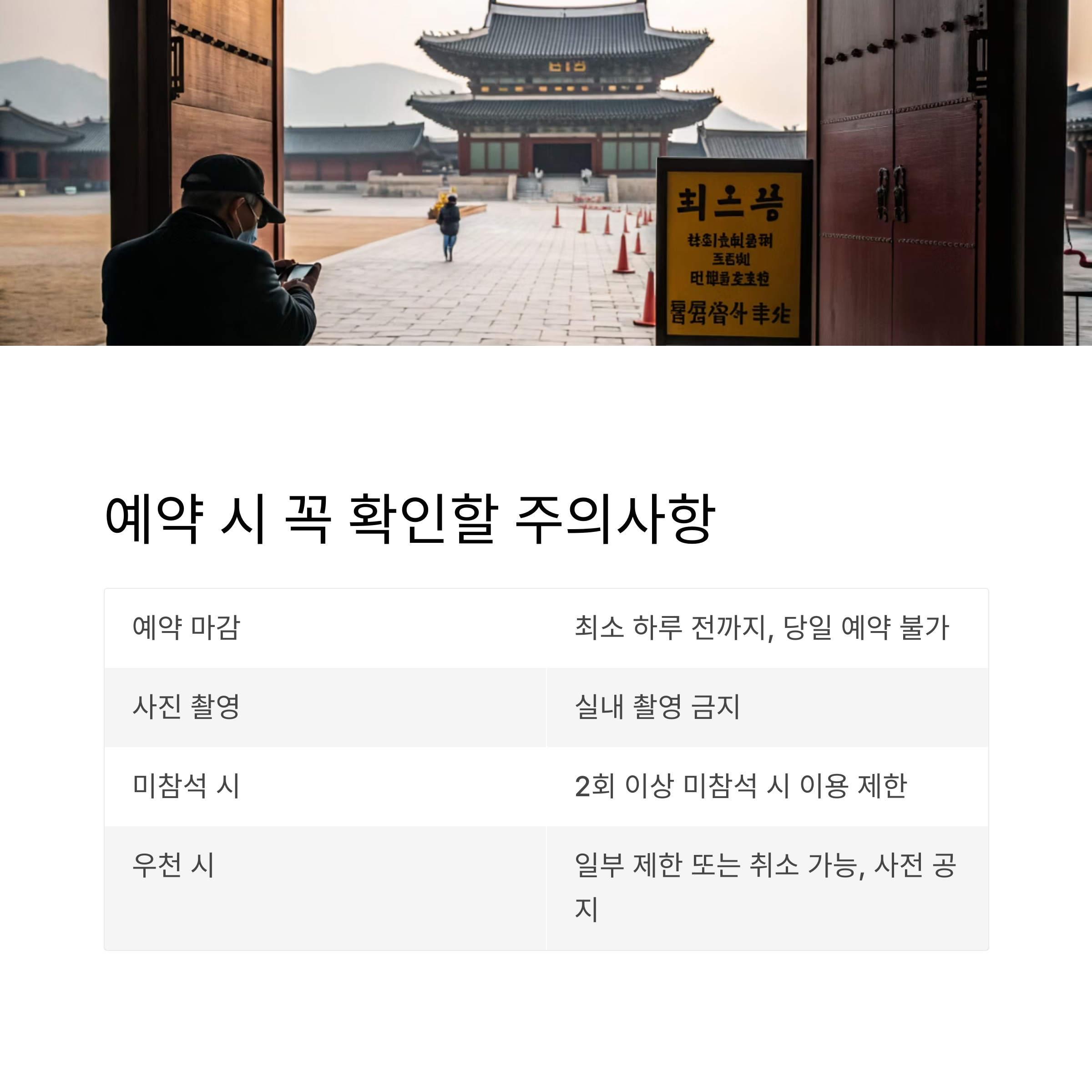 예약 시 주의사항, 꼭 체크하세요