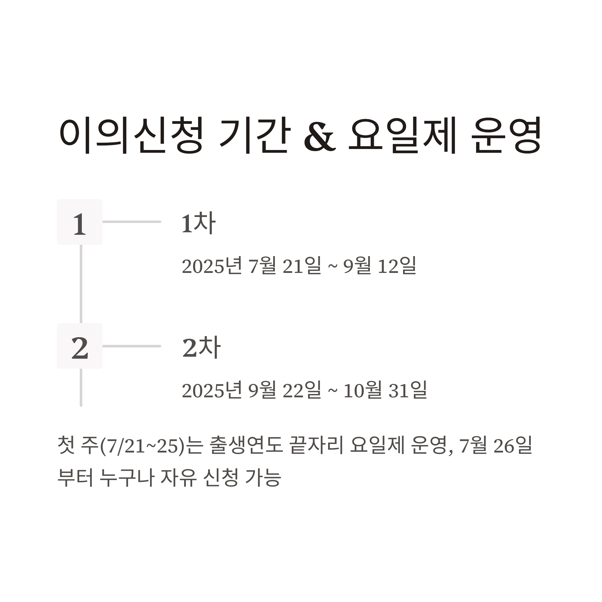- 이의신청 기간: 7/21~9/12(1차), 9/22~10/31(2차)