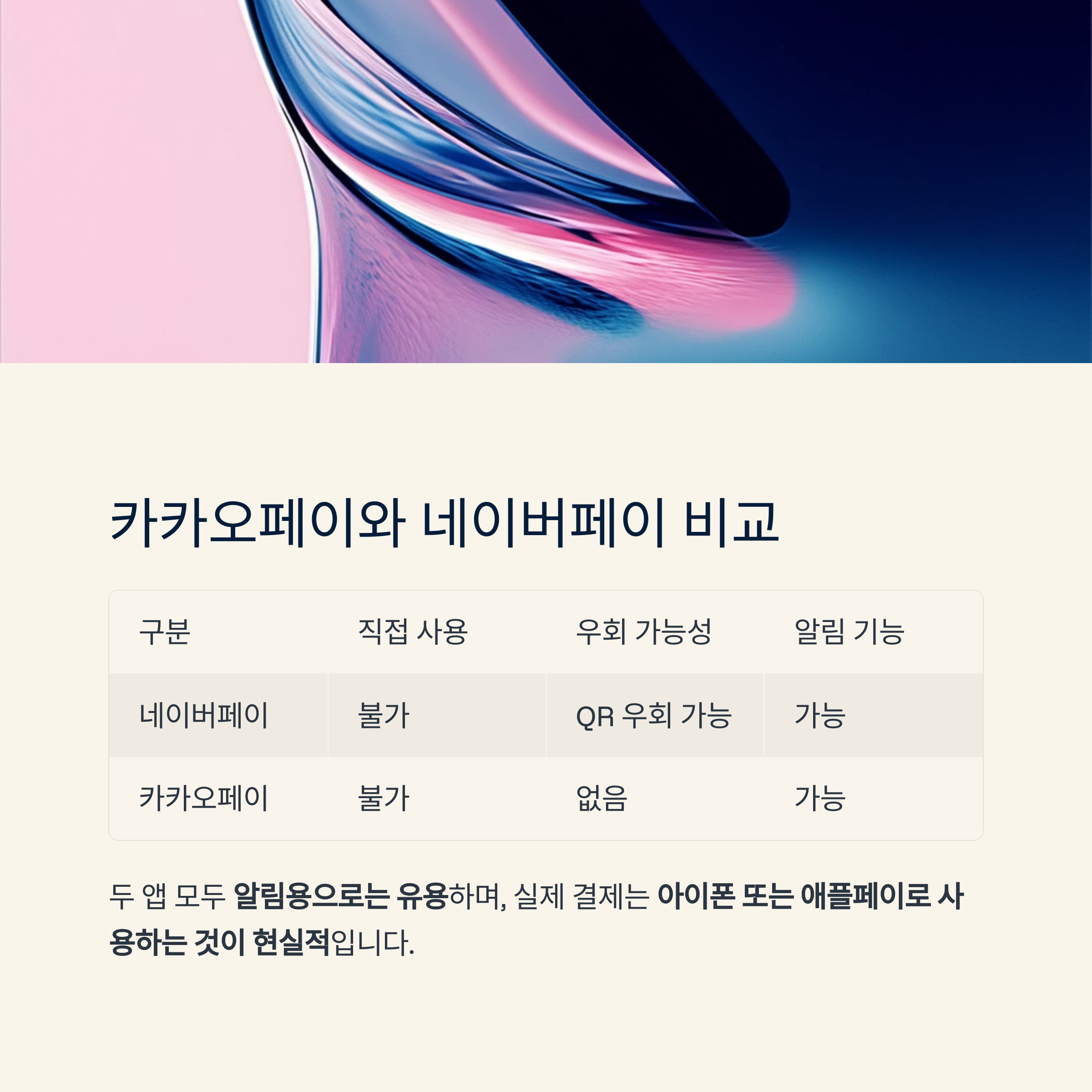 결론: 결제는 애플페이, 알림은 카카오·네이버 활용