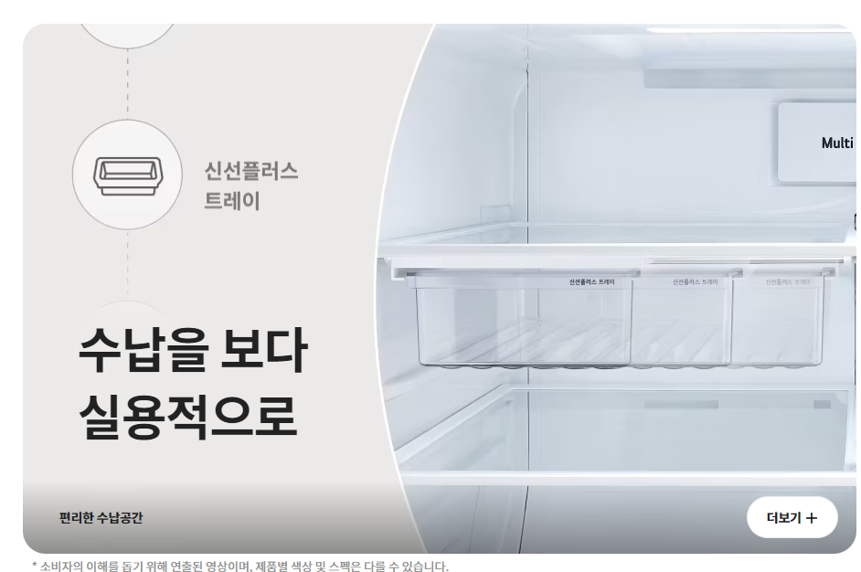 👉 서랍과 선반 모두 분리가 쉬워서 청소하기 편해요. 특히 야채칸 물받이도 깔끔하게 닦을 수 있어서 위생 관리에 딱이에요.