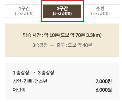 모노레일 요금은 구간에 따라 달라지며, 가을 성수기에는 빠르게 매진되므로 사전 예약이 추천됩니다. 1구간은 성인 5,000원, 어린이 4,000원이며, 2구간은 성인 7,000원, 어린이 6,000원입니다. 순환권은 성인 9,000원, 어린이 7,000원으로 전 코스를 한 번에 둘러볼 수 있습니다. 탑승 시 유모차는 접어야 하며, 임산부 및 노약자를 위해 자리 양보가 필요합니다.