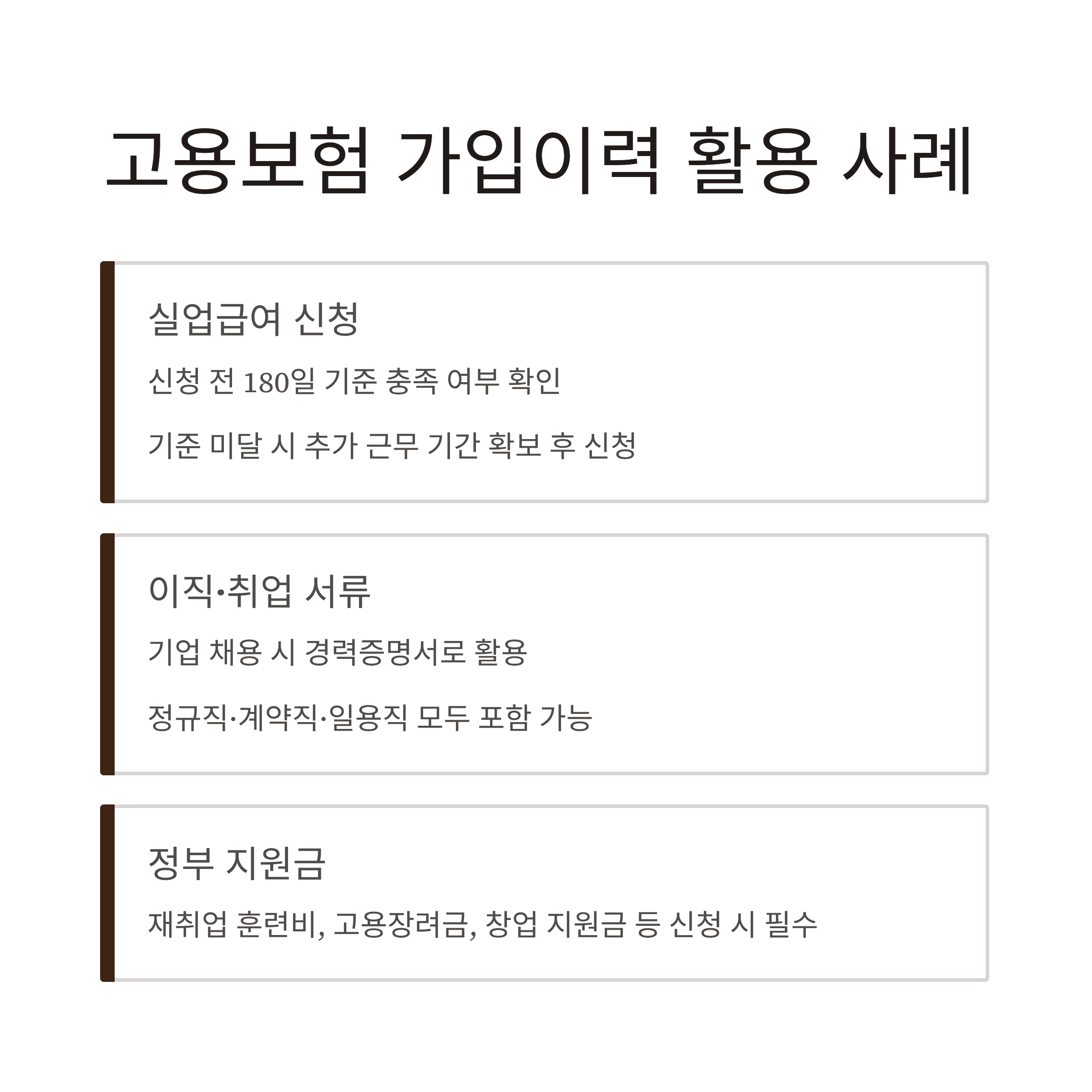 고용보험 가입이력은 단순한 확인 자료가 아니라 다양한 상황에서 공식 증명서 역할을 합니다.