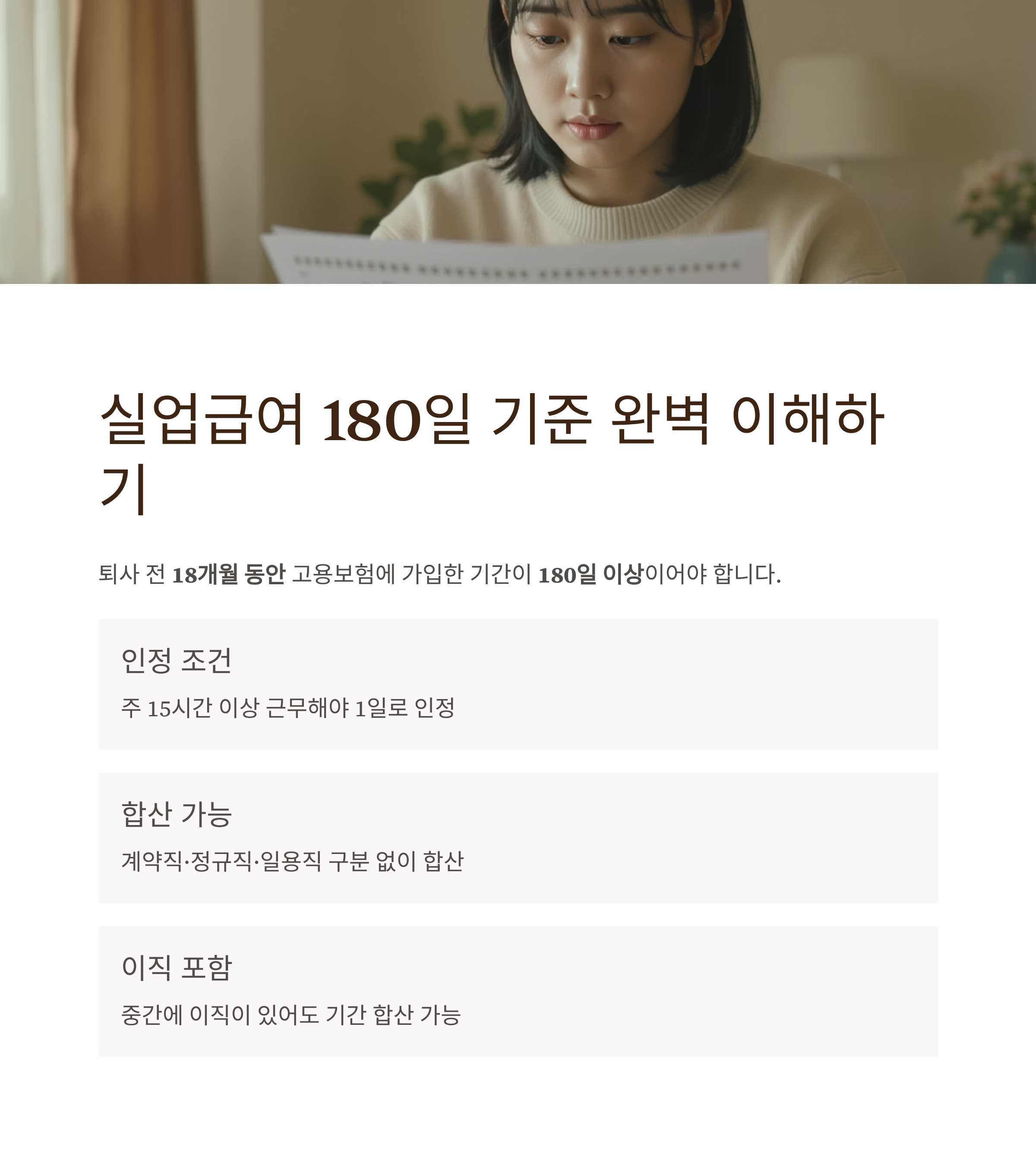 180일 기준은 실업급여 수급 자격의 핵심입니다.