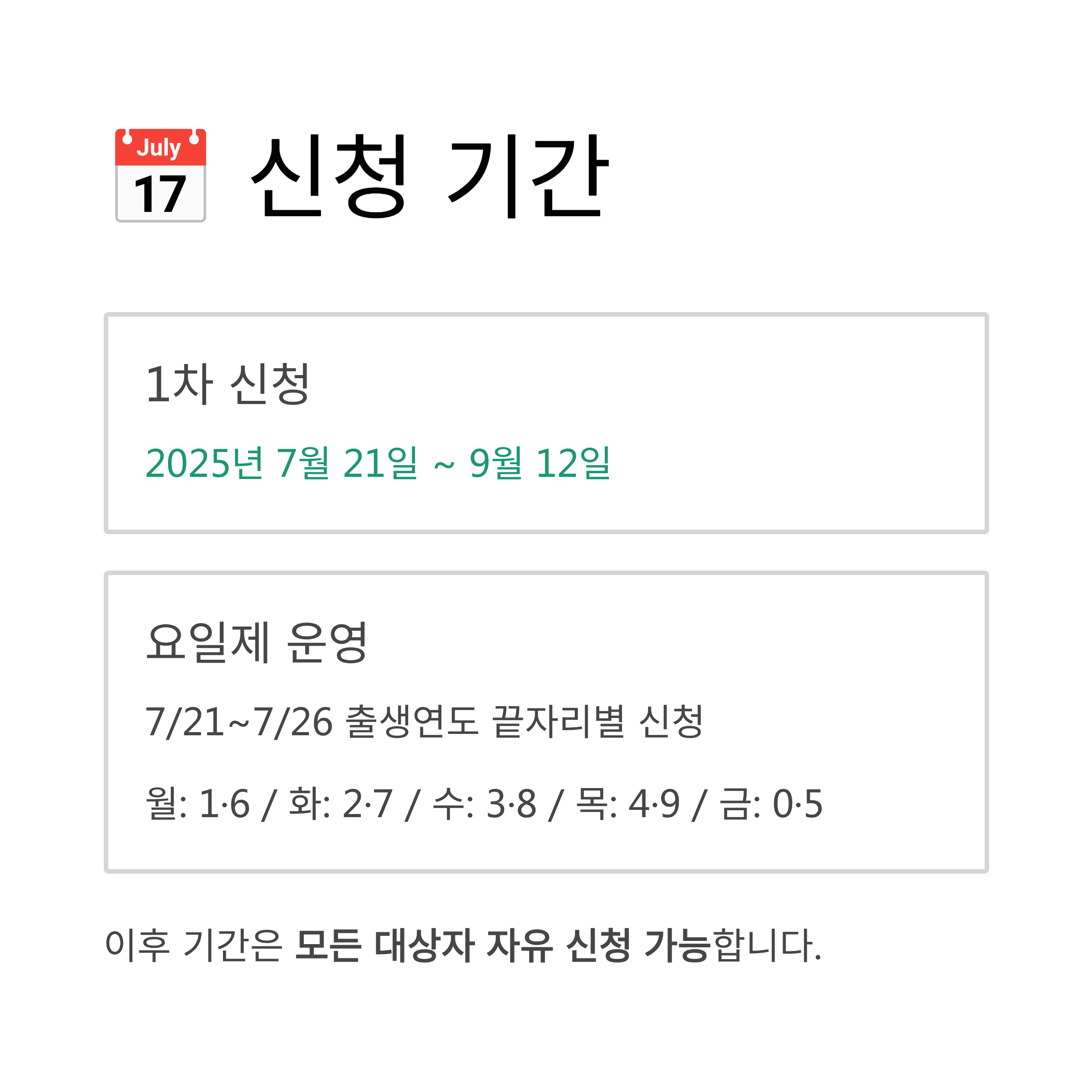 - 2025년 7월 21일 ~ 9월 12일 (1차)