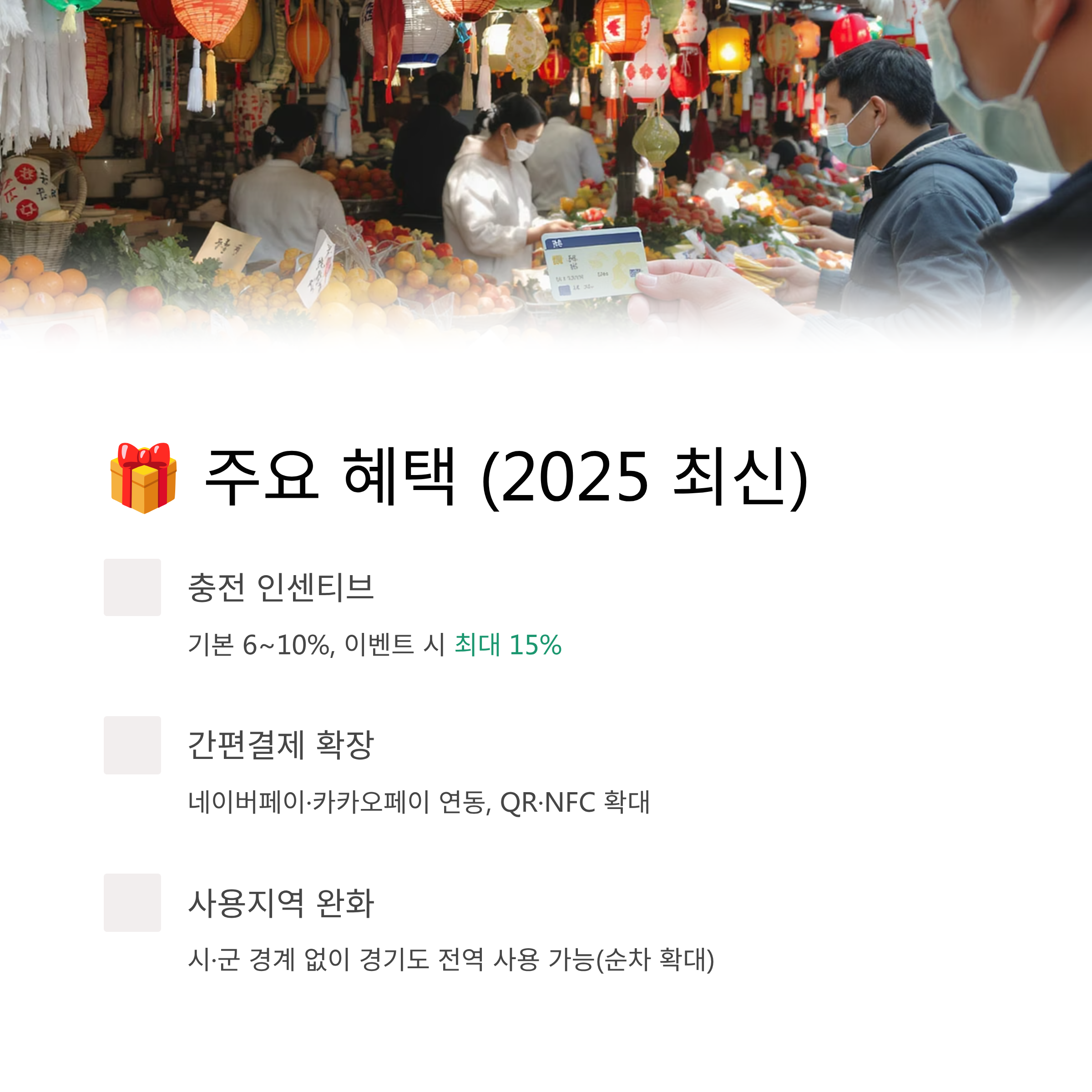 - 사용지역 완화: 시·군 경계 없이 경기도 전역 사용 가능(순차 확대)