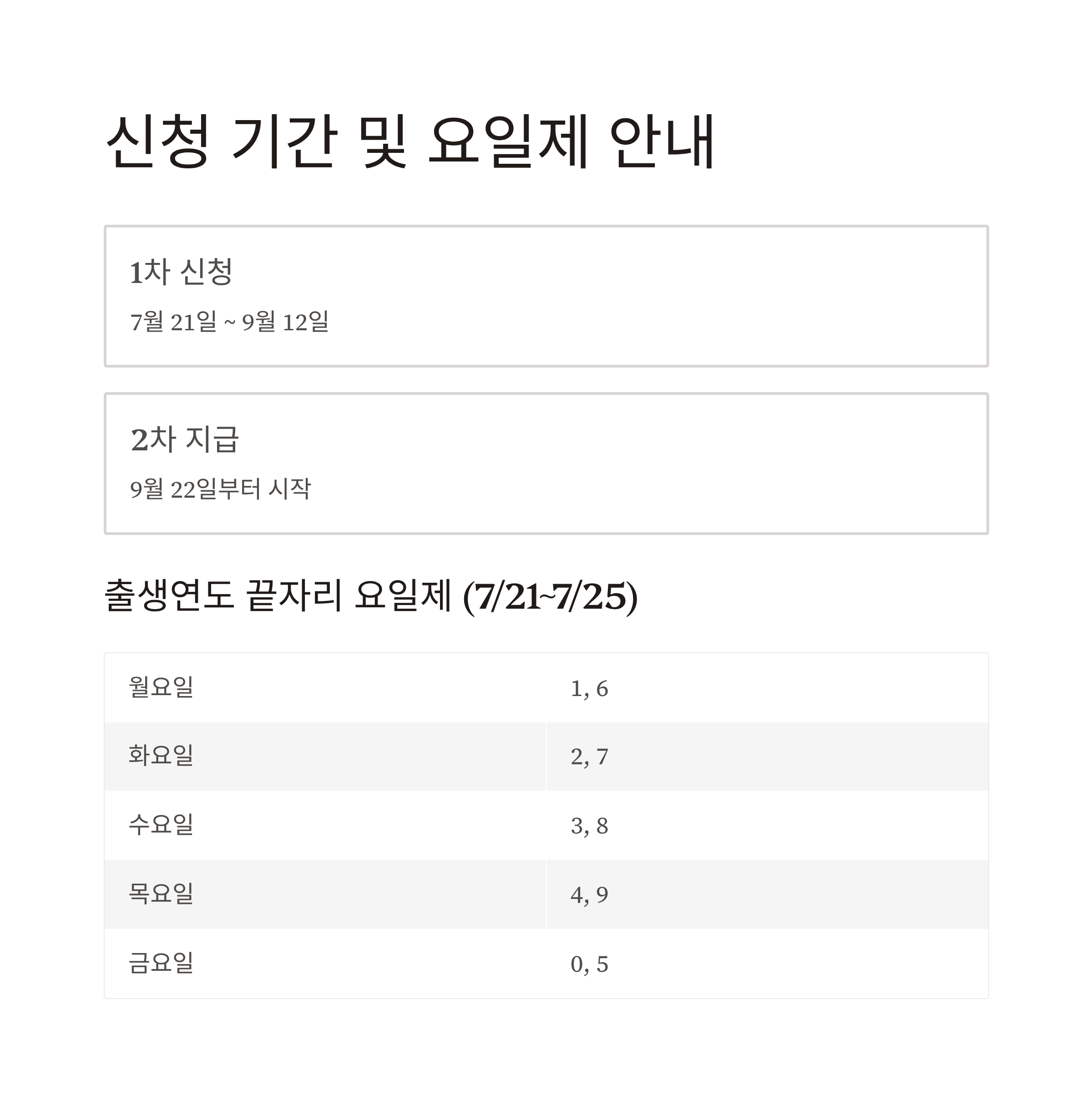 - ✅ 출생연도 요일제(7/21~7/25) 적용
